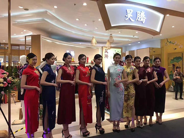 花開時節悅動京城,北京地區春季新展。昊騰品牌每件旗袍都金工細作,每款紋樣都由手工繪制